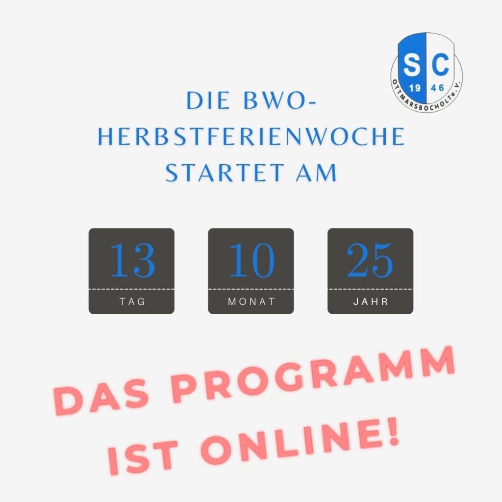 - Herbstferienwochevon PresseInformationen für Eltern und Kinder rum um die BWO-Herbstferienwoche Diese Informationen haben die Eltern schon per Mail erreicht aber für einen sicheren und entspannten Ablauf der beliebtesten Ferienwoche des Jahres… Herbstferienwoche weiterlesen